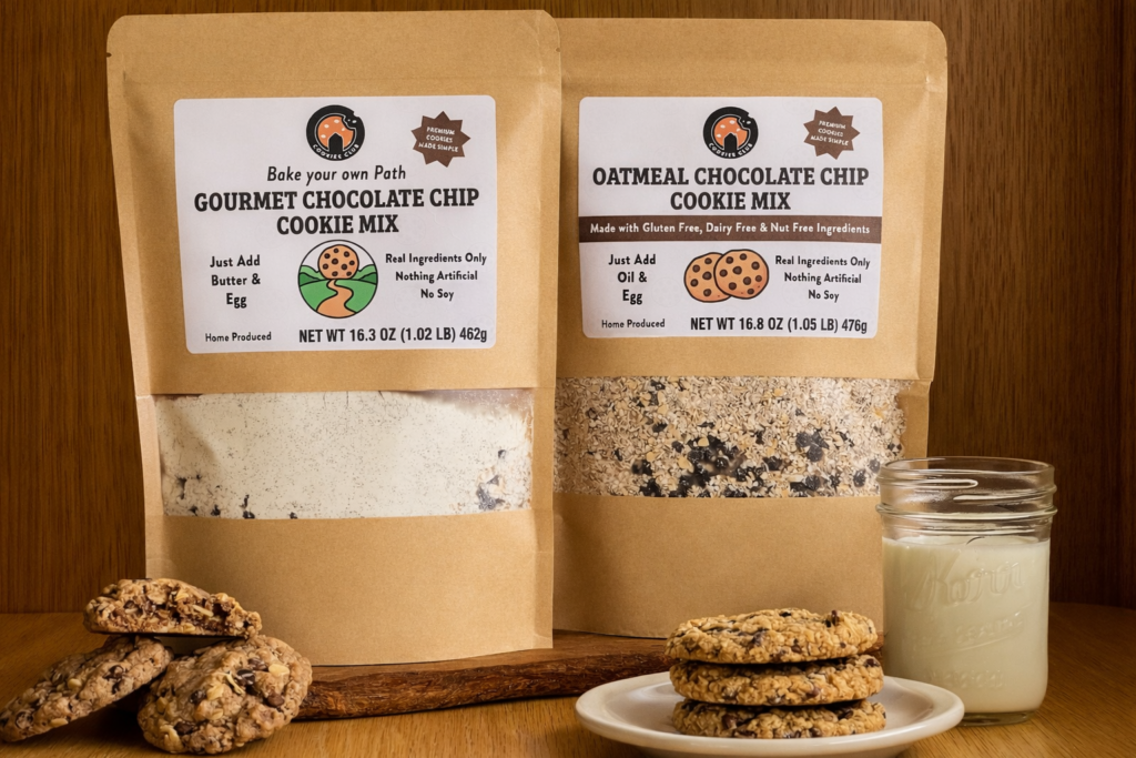 Choose Gourmet Chocolate Chip or Allergen Friendly Oatmeal Chocolate Chip. Made with real ingredients. No junk. Just delicious cookies ready for any journey.