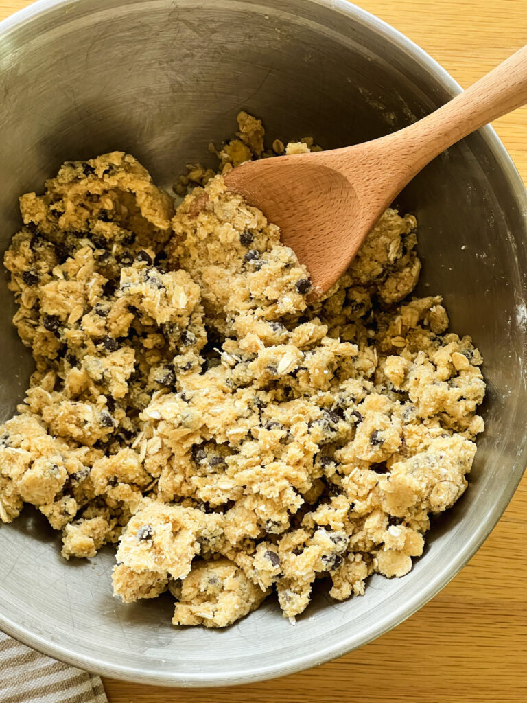 - Don’t overmix. Stir just until the dough comes together. Over-mixing can make cookies tough.